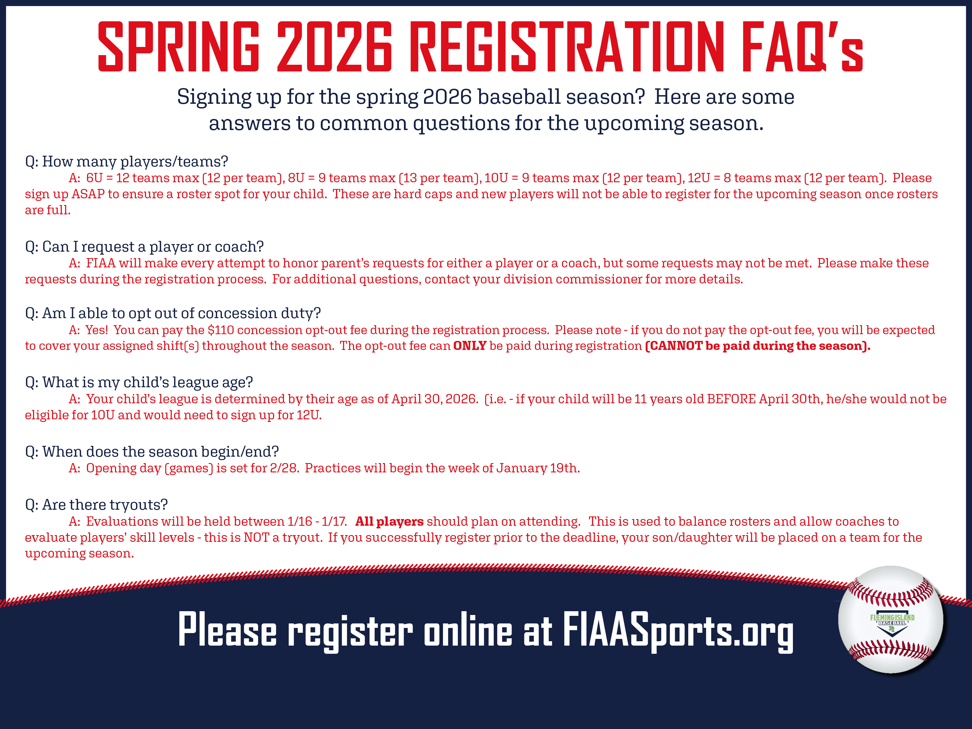 Please see above for contact information of all baseball and softball board members.