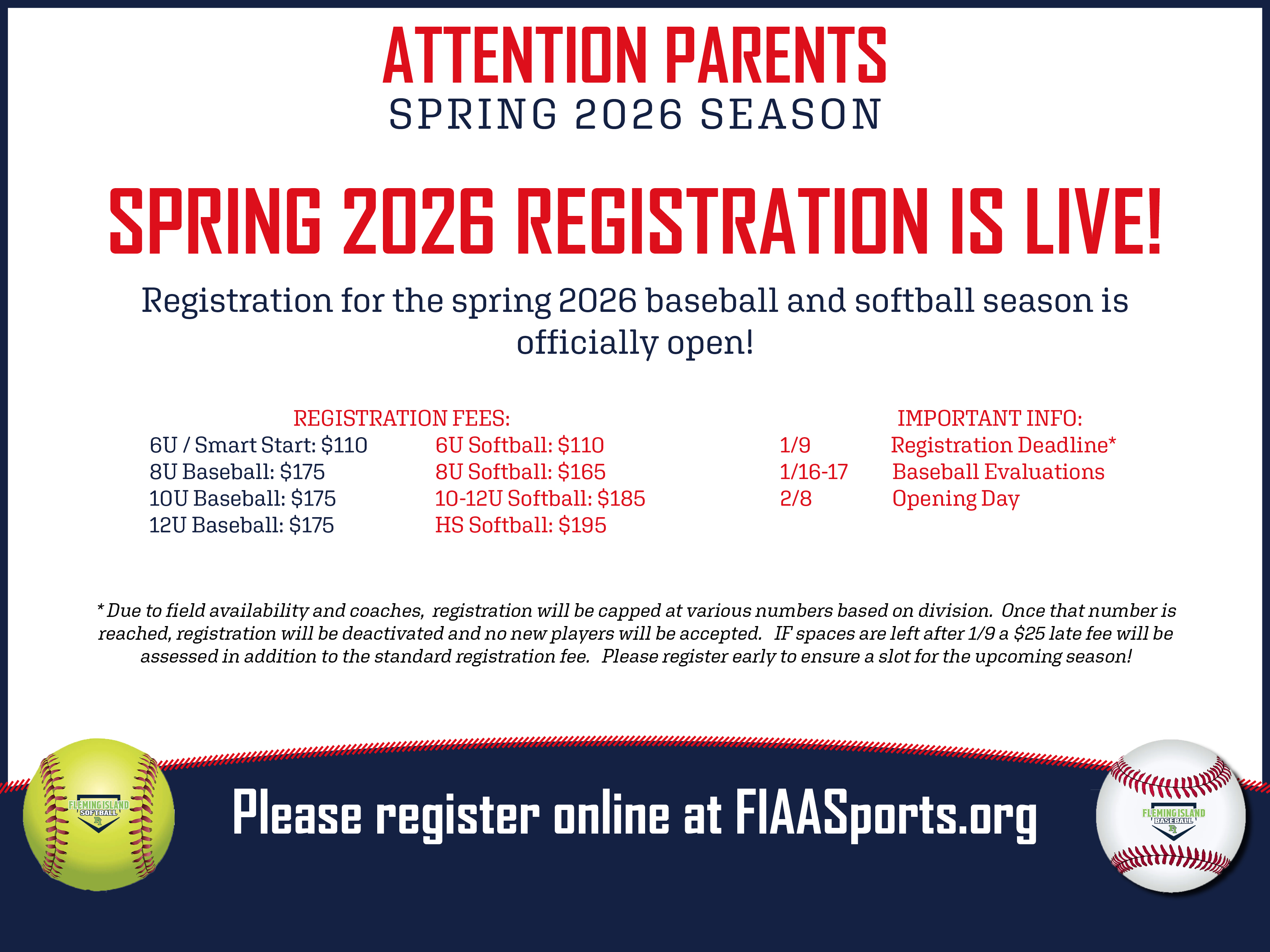 The Registration "FIAA Spring 2024 Baseball and Softball Registration" is not currently available.
